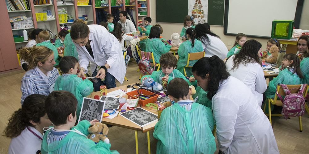 Cabe agradecer la colaboración de los estudiantes de la Facultad de Medicina (varios de ellos antiguos alumnos) participantes en esta actividad, que atendieron con toda dedicación a los niños de 5 años y compartieron con ellos una gran experiencia.