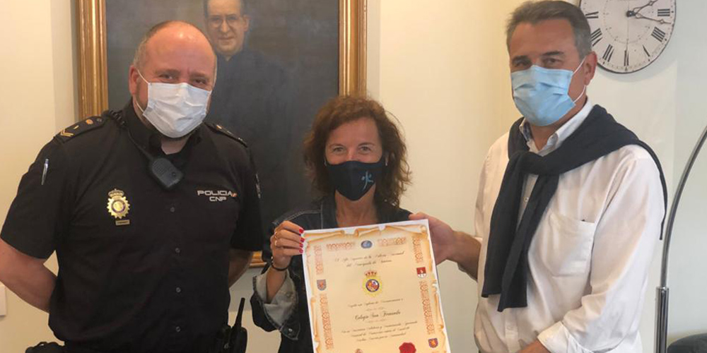 En un sencillo acto que tuvo lugar en la sala de reuniones del centro, el Delegado de Participación Ciudadana de la Policía Nacional de Avilés, Alberto Vior, entregó a nuestro Director Titular, Javier Martínez, y a la Directora Académica, Carmen Bueno, el diploma acreditativo. En él figura que "el Jefe Superior de la Policía Nacional del Principado de Asturias expide este Diploma de Reconocimiento al Colegio San Fernando por su iniciativa solidaria y desinteresada aportando material de protección contra el Covid-19. Muchas gracias por su generosidad".