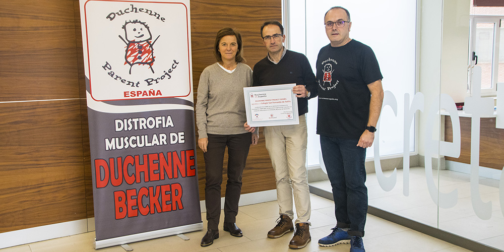 Representantes de la asociación Duchenne Parent Project España contra la distrofia muscular visitaron esta mañana el Colegio para agradecer la donación de los 3.000€ recaudados el curso pasado en las campañas solidarias realizadas por el centro, un logro conseguido con la colaboración de toda nuestra comunidad educativa.